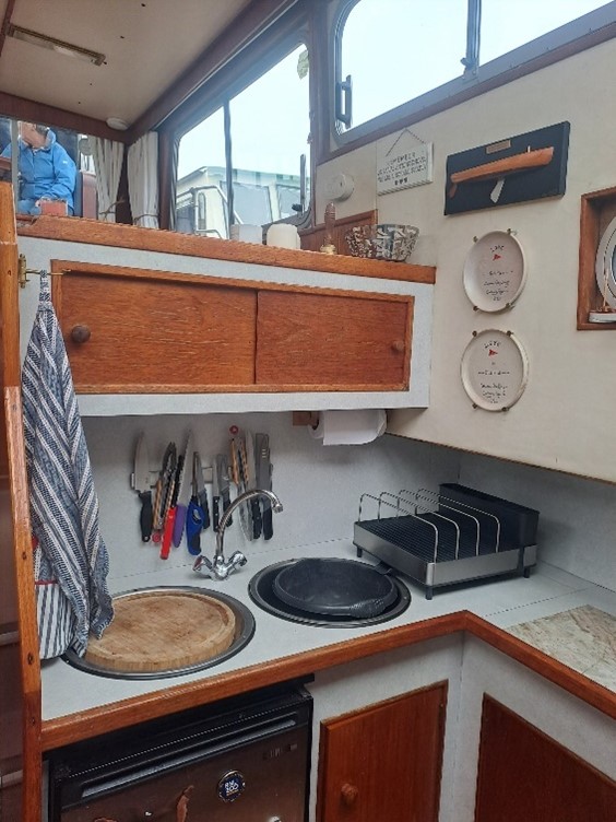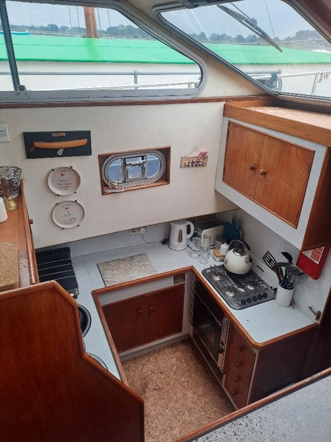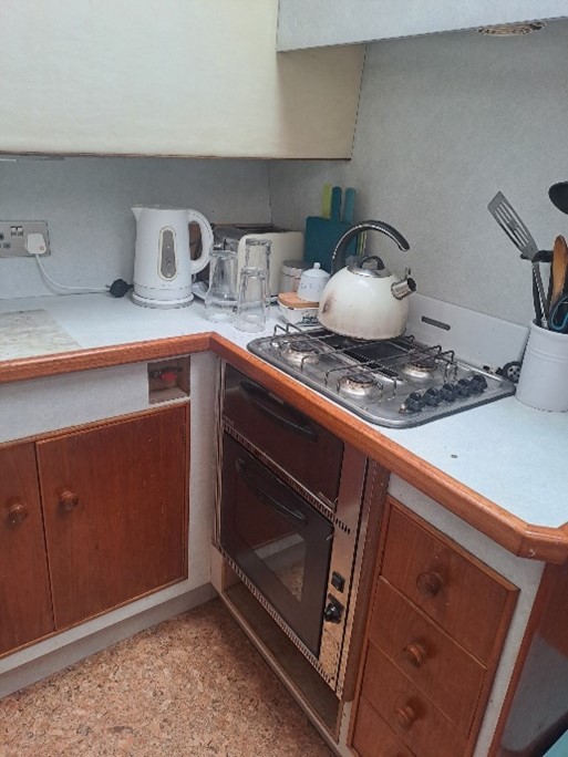 • Galley fitted with 4 hob burner, oven & electric Coolmatic fridge.